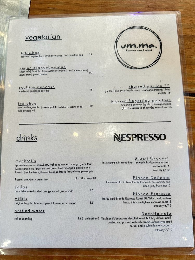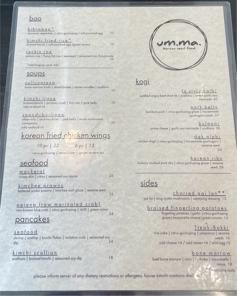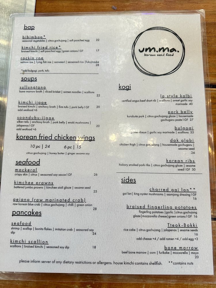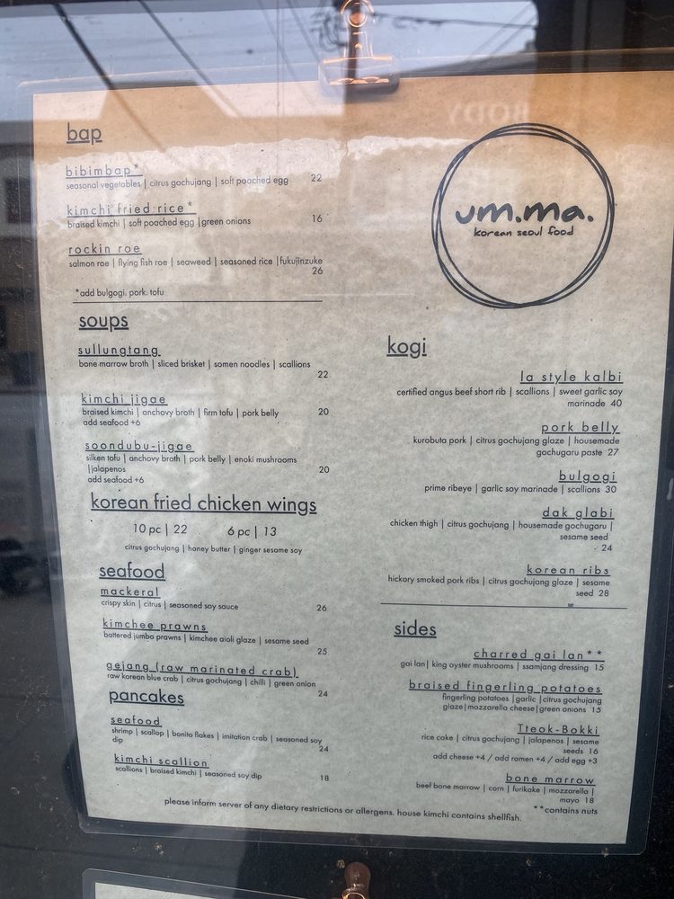 Introducing Um Ma, a modern and trendy Korean restaurant located in San Francisco's Inner Sunset neighborhood. With a variety of options like Seafood Pancake, Bibimbap, and Sul Lung Tang, Um Ma offers a unique take on traditional Korean cuisine. The restaurant provides a secluded and peaceful dining experience, especially on the back patio with overhead lights. The menu includes delicious dishes like pork belly, kimchi shrimp, and bone marrow cheese corn, ensuring a flavorful culinary adventure. While prices may seem high, the quality of the food justifies the cost. Um Ma is a great spot for groups, offering a variety of options for brunch, lunch, or dinner. With friendly staff and a welcoming ambiance, Um Ma is a must-visit destination for Korean food enthusiasts in the Bay Area.